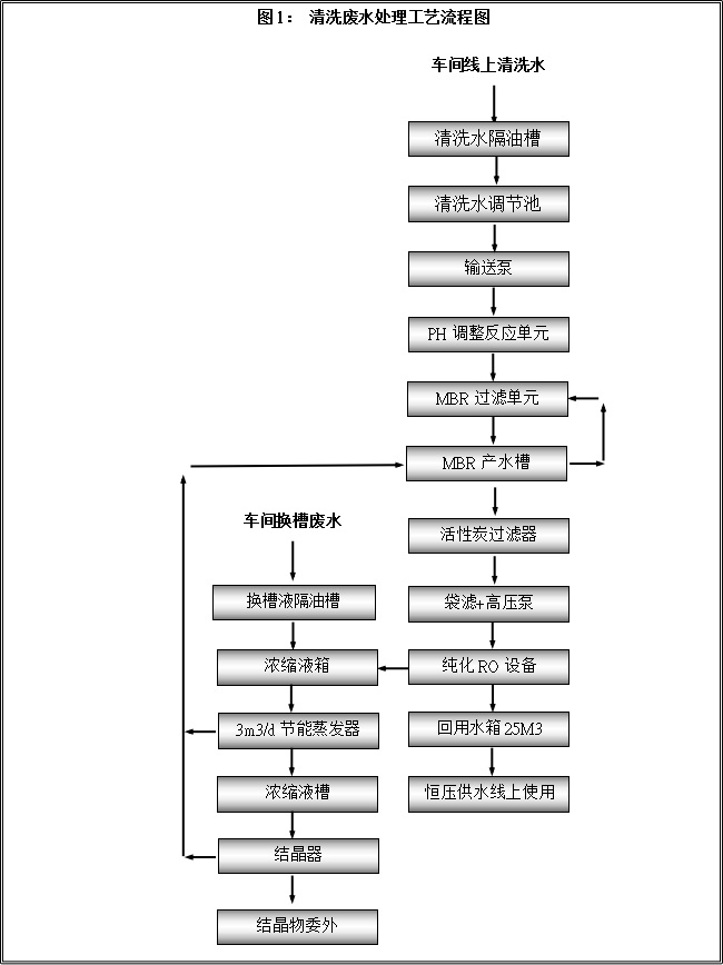 污水處理工藝的選擇應(yīng)綜合考慮工程投資、運(yùn)行管理費(fèi)用、出水水質(zhì)要求、操作管理難易、占地面積的大小等多種因素。本污水表面活性劑高,含有油脂、同時(shí)水量較小,一般的化學(xué)生化處理是不適宜的工藝。廢水處理后要求回用,故常規(guī)的物化生化工藝不能滿足回用要求。我們根據(jù)水量與水質(zhì)提出如下工藝設(shè)備進(jìn)行處理與回用。